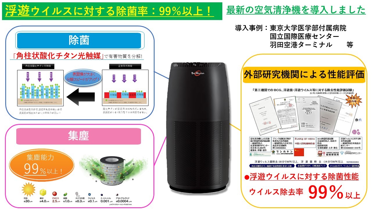 今回当院に導入した機器の除菌機序とそのデータには 信頼を置いています。