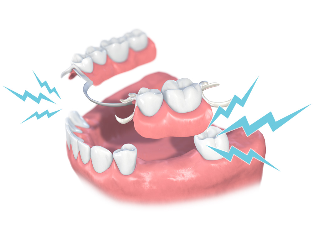 奥歯がないと、そこから息が漏れるせいで、「き」「し」「ち」などのイ段の発音がうまくできない場合があります。また、入れ歯が合わないと、話している最中にずれたり外れたりすることがありますが、奥歯にインプラントを入れることによって会話中のストレスが軽減されます。